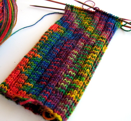 Da bei uns alle 3 in den letzten Tagen dieser Strang von Blue Moon eingezogen ist haben wir uns spontan zu einem kleinen MiniKal entschieden. Mit oder ohne Muster, kann jeder selber entscheiden. Mal sehen wie verschieden (oder auch nicht) die Socken werden. Ich hab mich für das Par 5 Muster von Ingrid Hiddessen entschieden. Die Farben von dem Strang (es ist der Boobie1) sind hammermässig schön!